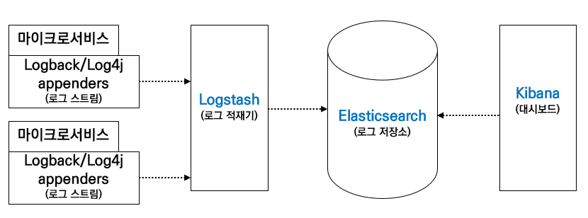 서버(로그발생) ⇒ Logstash(로그 수집) ⇒ Elasticsearch(수집한 로그 가져옴) ⇒ Kibana(가져온로그 가시화&모니터링)